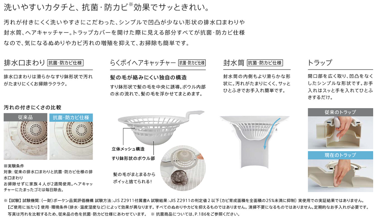 お掃除ラクラク排水口(抗菌、防カビ仕様)
